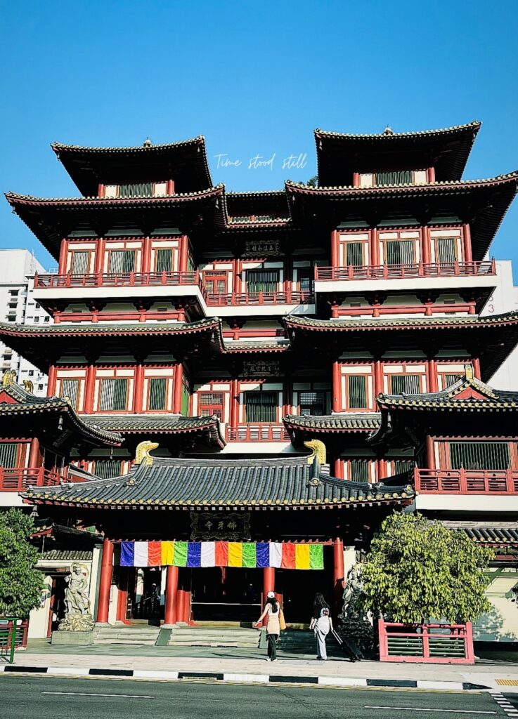 I walked through the streets of this culturally rich part of the city, taking in the textures and colors around me, when I spotted a beautiful red-and-gold structure which was listed first on the to-do sheet my hostel had handed me. The Buddha Tooth Relic Temple felt like the perfect place to start. I wandered around silently, letting the calm of the place settle over me, before heading off to explore more of the neighborhood. I tried some incredible food at a nearby hawker center – the kind that makes you forget you’ve barely slept; and then made my way back to the hostel for a much-needed three-hour nap on my tiny bed cozy enough for one person.